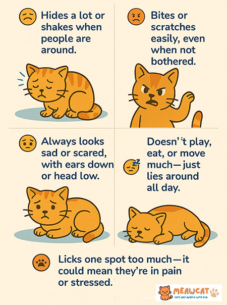 🐾 Licks one spot too much—it could mean they’re in pain or stressed.
