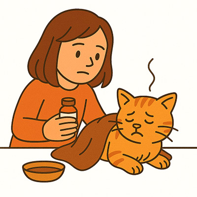 A cat looks sick, but maybe the owner is already trying to help or taking it to the vet soon.
