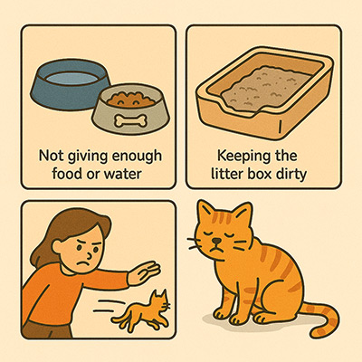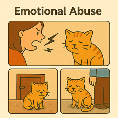 Even though you can’t see bruises, cats feel emotions too. Emotional abuse includes:
