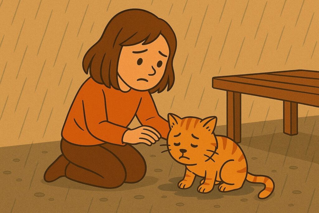 It was a rainy afternoon when Shakila saw it—a small, orange kitten hiding under a bench near her house. The kitten was shivering, soaked from head to tail. Its fur was dirty, and it limped when it tried to walk. Shakila knelt down and gently whispered, “It’s okay… I won’t hurt you.”